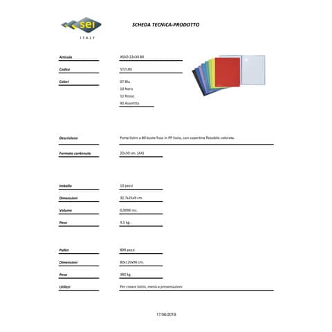 Porta listini 80 buste con morbida copertina in PP colorato e buste in PP liscio. Colore: blu.Nero Rosso