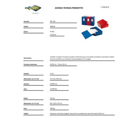 Cartelle in Colpan® (cartone rivestito in PVC) chiusura a tre lembi con bottoni automatici. Dotate di porta cartellino con etichetta intercambiabile e di maniglia in tinta per poterle spostare agevolmente. I dettagli in tinta evidenziano eleganza e raffinatezza. Ideali per archiviare progetti, disegni, documenti e cartelline per atti, per chi ha bisogno di tanto spazio. Formato esterno 26x36 cm. Formato contenuto 25x35 cm (A4), dorso 16 cm. Colore: blu.