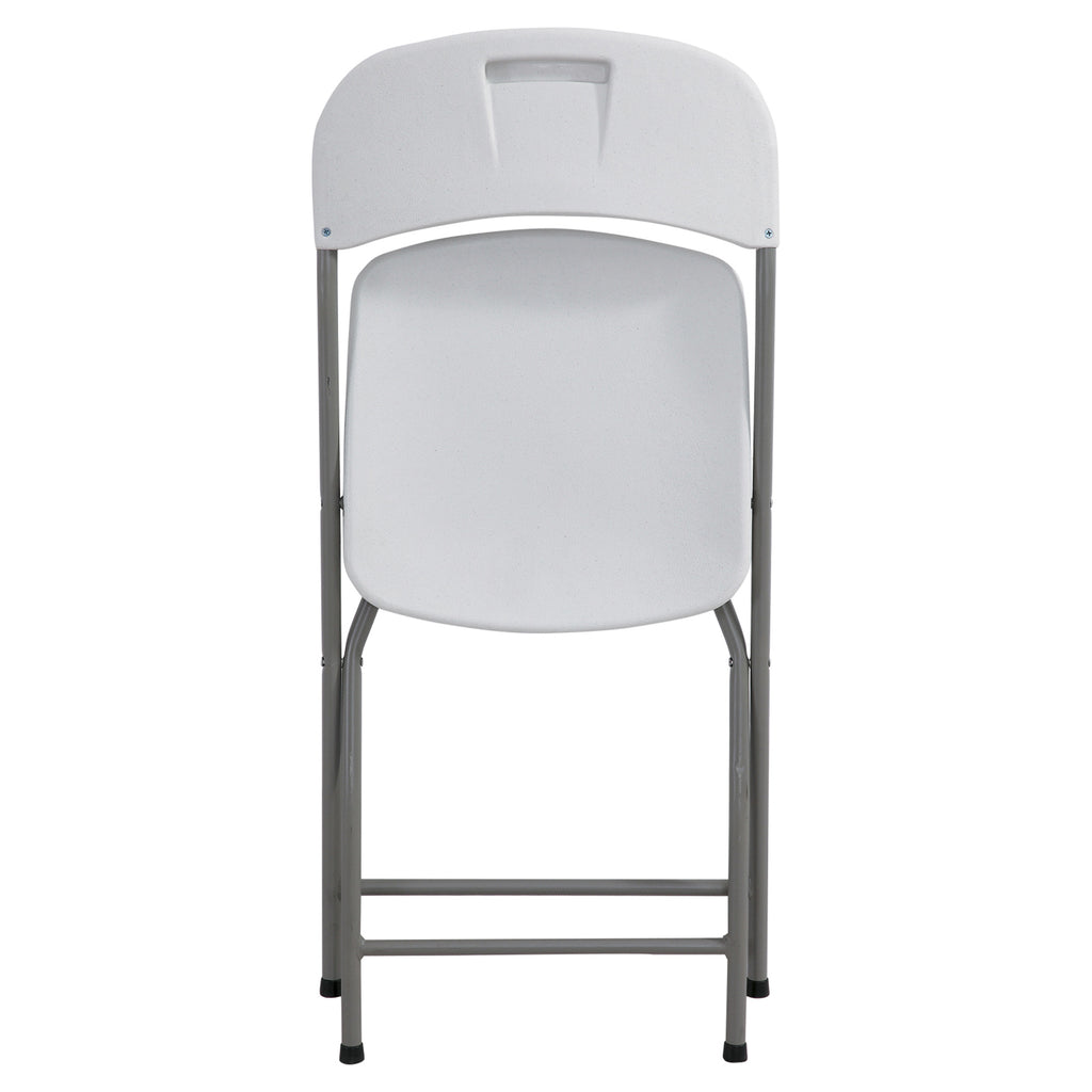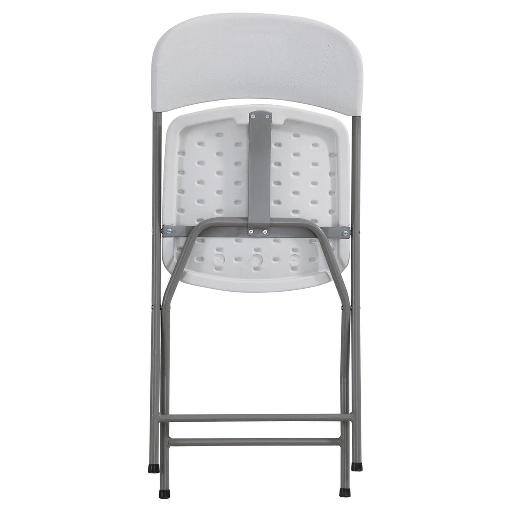 Sedia pieghevole in polietilene e acciaio verniciato.