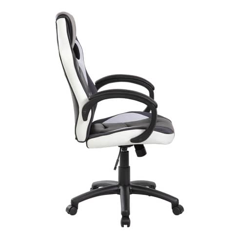 Poltrona gaming Las Vegas, bianco-nero, per adulti. Rivestimento in PU (poliuretano, ecopelle) certificato e atossico. Razze in nylon con ruote piroettanti. Sistema di elevazione a gas per la regolazione del sedile in altezza. Meccanismo oscillante bloccabile. Regolazione di tensione della spinta. Braccioli imbottiti.