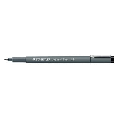 Penna Pigment Liner 308 a punta sintetica graduata per scrittura e disegno tecnico, inchiostro pigmentato per documenti; colore nero intenso. Può rimanere senza cappuccio per 18 ore senza seccare (test ISO 554). Airplane-safe. Lunga punta in metallo ideale per righe.