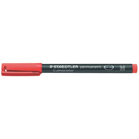 Penna Lumocolor® a punta sintetica universale per quasi tutte le superfici. Ottima resistenza allo strofinamento, alla luce, all’acqua e all’umidità, inchiostro indelebile subito asciutto, inodore con formula DRY SAFE: la penna può rimanere aperta per giorni senza seccare. Box con 4 penne con punta sintetica media M = media 1,0 mm.
