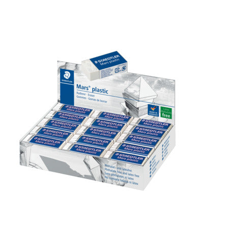 Gomma incellophanata singolarmente. Adatta per matita in grafite e matita colorata su carta, carta trasparente e pellicola con superficie opaca (poliestere). Non danneggia la superficie del supporto. Non produce elettricità statica agevolando lo spolvero dei residui. Formato mini. Dimensioni 40x19x13 mm.