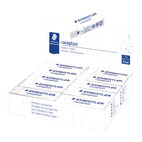Gomma con pratico involucro di cellofan con apertura a strappo e fascetta scorrevole per un uso funzionale. Comfort quality per cancellature di alta qualità. Residui minimi. Senza ftalati e senza lattice. Dimensioni: 65x23x13 mm.