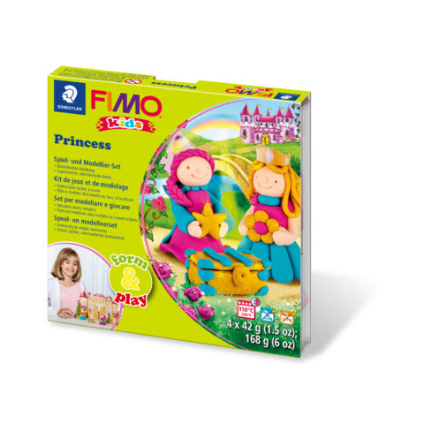 Kit Fimo Kids Form&Play: pasta modellabile particolarmente morbida e appositamente studiata per le mani dei bambini. Stimola la ceativita', la fantasia e la capacita' di rappresentazione dello spazio. Contenuto della confezione: 4 panetti Fimo Kids da 42 g, un bastoncino per modellare, sfondo da gioco e istruzioni.