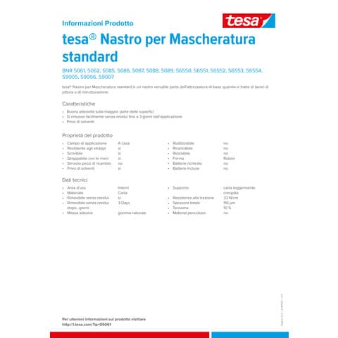 Tesa® Nastro per Mascheratura Standard è un nastro versatile che dovrebbe far parte dell'attrezzatura di base quando si tratta di lavori di pittura o di ristrutturazione. È fatto di carta per un facile smaltimento. Ha una buona adesività sulla maggior parte delle superfici e può essere rimosso facilmente senza residui. La rimozione senza residui entro due giorni dall'applicazione è garantita. Misura 38 mm x 50 m. Colore beige.