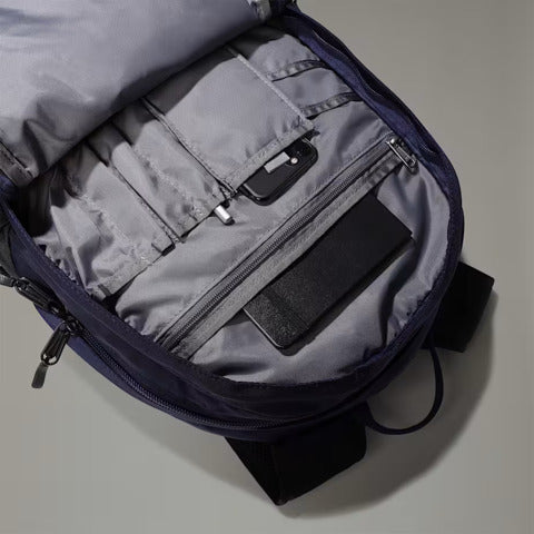 Zaino capiente e funzionale da 29 litri. Spazioso e ideale per inserire: capi da trekking, pranzo al sacco, oppure per portare il cambio per la palestra, i libri e, in una tasca dedicata, il laptop. La cintura sui fianchi e la cinghia pettorale offrono il massimo del comfort. La cintura sui fianchi e la cinghia pettorale offrono il massimo del comfort durante le escursioni con carichi pesanti, ma possono essere riposte o rimosse durante gli spostamenti in città. Un pannello posteriore imbottito in air mesh e gli spallacci in schiuma garantiscono il massimo comfort dovunque tu stia camminando. Dotato di una tasca portaoggetti frontale, le due tasche porta borraccia e uno scomparto secondario. Ampio scomparto principale con tasche interne, alloggiamento per sacca idrica e tasca idonea a un laptop di 15”. Dimensioni: 48,3 x 34,3 x 19 cm. Dimensioni tasca per laptop: 34,2 x 26,6 cm. Colore Navy (blu scuro) con dettagli Tin Grey (grigio chiaro).
