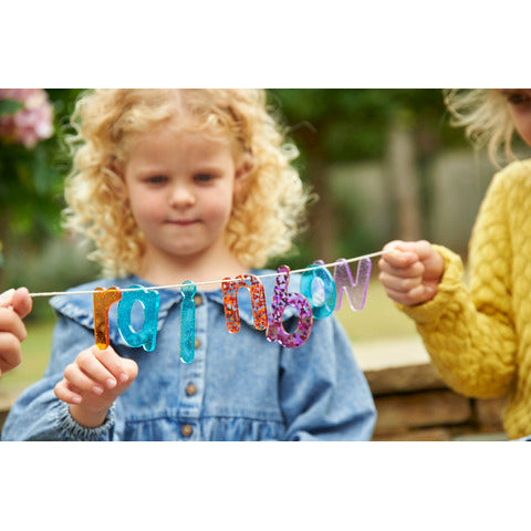 TICKIT - Set 26 lettere dell'alfabeto commotion - acrilico trasparente nei colori dell'arcobaleno glitterate - 72433