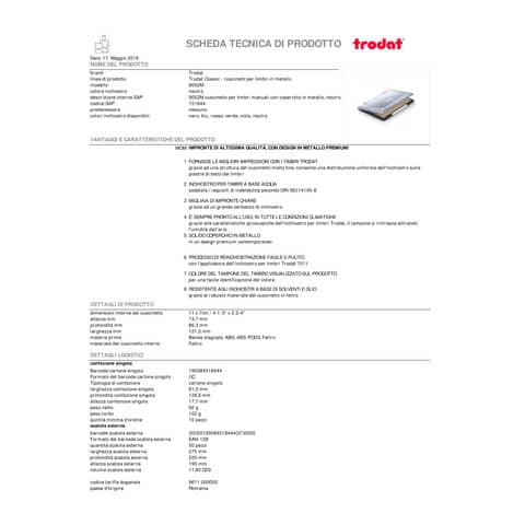 Cuscinetti in feltro con coperchio di metallo. Ampio serbatoio di inchiostro per migliaia di impronte nitide ed intense. Inchiostro indelebile in conformità alla norma DIN ISO 14145-2. Il cuscinetto non inchiostrato è adatto anche per inchiostri speciali a base olio e base solvente.Nero Blu Rosso Verde