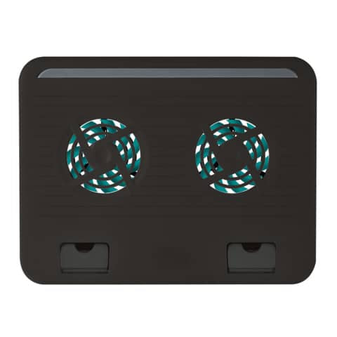 Supporto per notebook dotato di due silenziose ventole di raffreddamento incorporate, per una confortevole digitazione all'inclinazione desiderata e una protezione dal surriscaldamento. Posizionamento impostabile su 8 livelli per sollevare, abbassare o inclinare lo schermo e la tastiera del notebook per un migliore comfort operativo. Migliora l'efficienza di raffreddamento del notebook e protegge i mobili e le gambe dall'esposizione alle alte temperature dovute al suo utilizzo. Adatto a qualsiasi notebook, netbook o MacBook dotato di schermo fino a 16”. Ventole alimentate tramite USB: non è necessario alcun collegamento alla presa a muro. Gommini protettivi per eliminare qualsiasi sdrucciolamento o pericolo di graffiature. Cavo e spinotto USB riponibili all'interno del supporto in caso di mancato utilizzo.