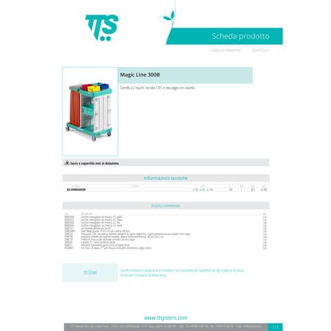 Magic Line 300 Basic TTS è il carrello multiuso a 2 reparti con capacità di raccolta 120 L e stoccaggio con cassetto. Ruote 100 mm. Il carrello in polipropilene è modulare e accessoriabile per rispondere ad ogni esigenza di pulizia. Ideale per il trasporto di attrezzatura. I montanti in plastica separano nettamente i moduli del carrello evitando contaminazioni tra la zona di lavaggio, stoccaggio e raccolta rifiuti. Equipaggiato con secchielli 4 L di colore diverso. Dimensioni 92 x 55 x 110 cm. Sacco e coperchio non in dotazione.