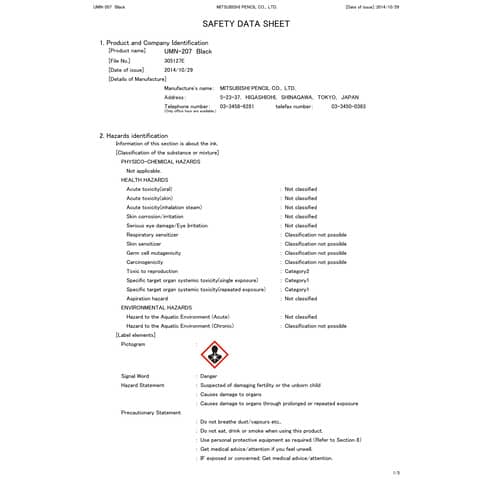 - Altre caratteristiche: corpo trasparente per il controllo del livello dell'inchiostro. Ripristino automatico della miniera quando si aziona il meccanismo a clip. Inchiostro pigmento a base acqua impermeabile.