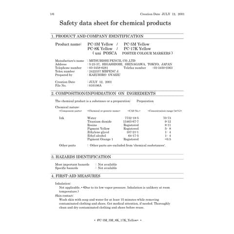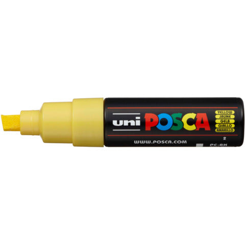 Marcatore a tempera con inchiostro pigmentato a base d`acqua, resistente alla luce e all`acqua. Atossico, inodore, non macchia, non passa la carta. Alto potere coprente. Colori intensi, miscelabili e acquerellabili. Scrive su tutte le superfici: carta, cartoncini colorati, plastica, vetro, metallo e tessuti. Punta large a scalpello 8 mm. Colore inchiostro: giallo.Blu Bianco Nero Rosso Verde