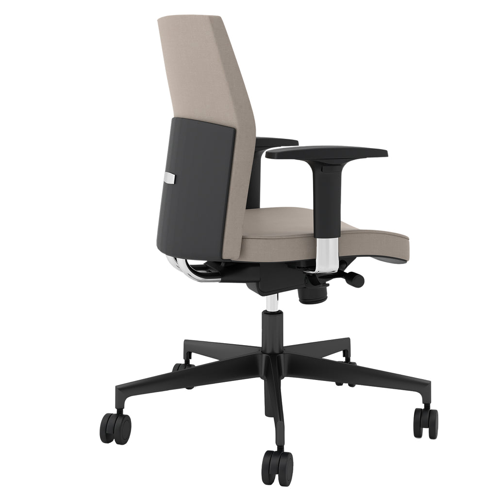 Seduta operativa girevole - elevazione a gas - meccanismo syncro - 4 blocchi anti shock - meccanismo a contatto permanente - regolazione schienale up-down. Rivestimento seduta in tessuto ''fashion - salo''' 100% poliestere e certificazione di infiammabilita' 1im uni 9175 en 1021. Completa di braccioli regolabili. Alt.tot.: 98-109cm; prof.tot.: 68cm; alt.schienale: 55cm; larg.schienale: 45cm; larg.seduta: 46cm; prof.sedile: 46cm; alt. Sedile: 41-52cm.
