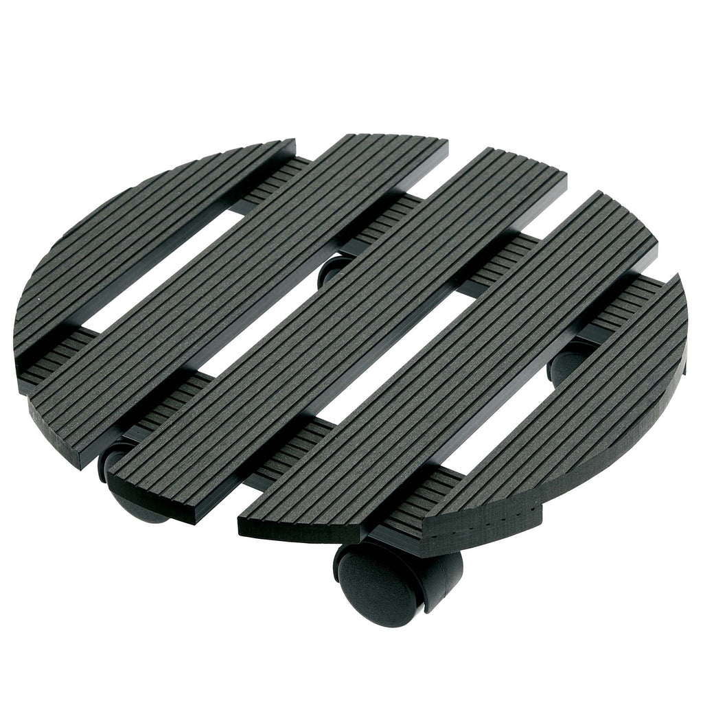 Trolley portavaso in wpc idrorepellente d 30cm con 4 ruote pivottanti. Portata 60kg. Il wpc (wood plastic composite) e' un legno “composito” ottenuto per estrusione a caldo di fibre di legno naturali con resine e polimeri. Questo prodotto risulta quindi molto robusto e soprattutto idrofobo quindi resistente all’acqua.