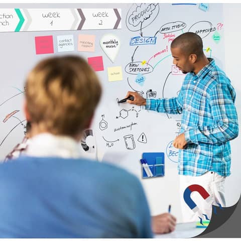 Lavagna Adesiva Bianca lucida magnetica roll up misura 45x60cm scrivibile con pennarelli e cancellabile60x90 Cm