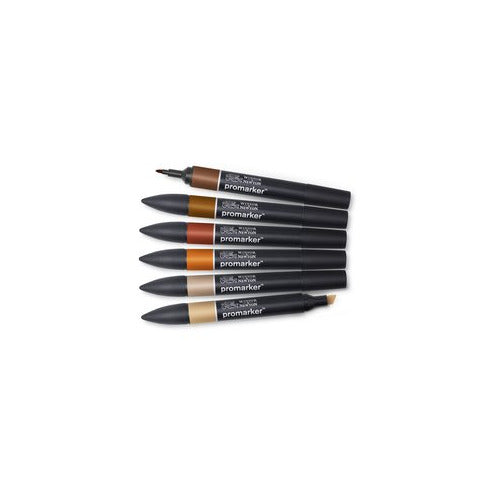 WINSOR&NEWTON - Pennarelli promarker doppia punta fine-larga - conf. 6 pz toni carne scuro - 0290115