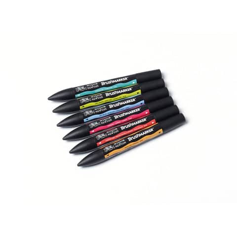 WINSOR&NEWTON - Pennarelli promarker brush doppia punta scalpello-pennello - conf. 6 pz toni medi - 0290124